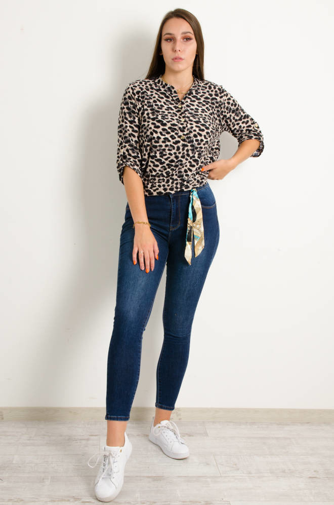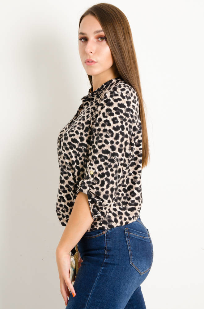 BLUZKA W PANTERKĘ Z OZDOBNYMI GUZIKAM- SZARA
