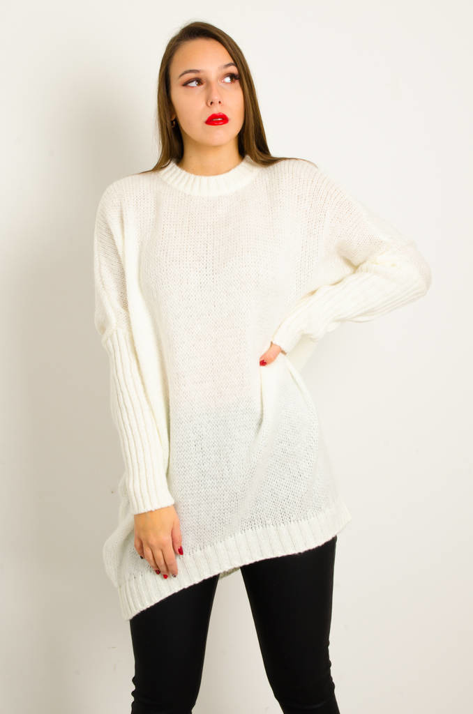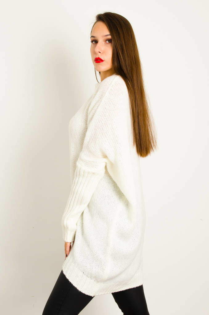 DŁUGI BIAŁY ASYMETRYCZNY SWETER