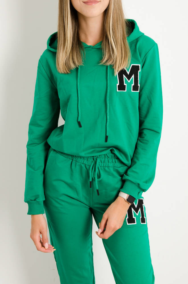 KOMPLET DRESOWY Z OZDOBNĄ NASZYWKĄ- ZIELONY