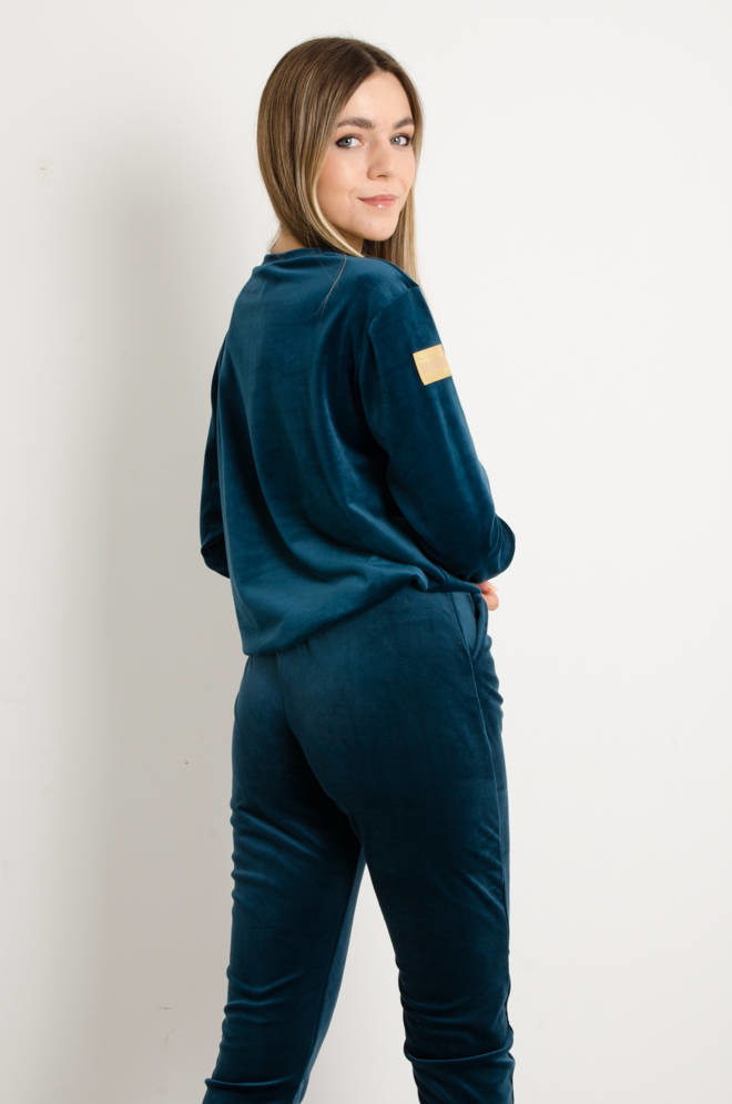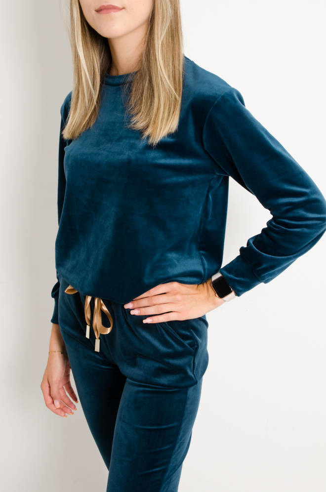 KOMPLET DRESOWY WELUROWY Z OZDOBNĄ NASZYWKĄ- CIEMNY TURKUS
