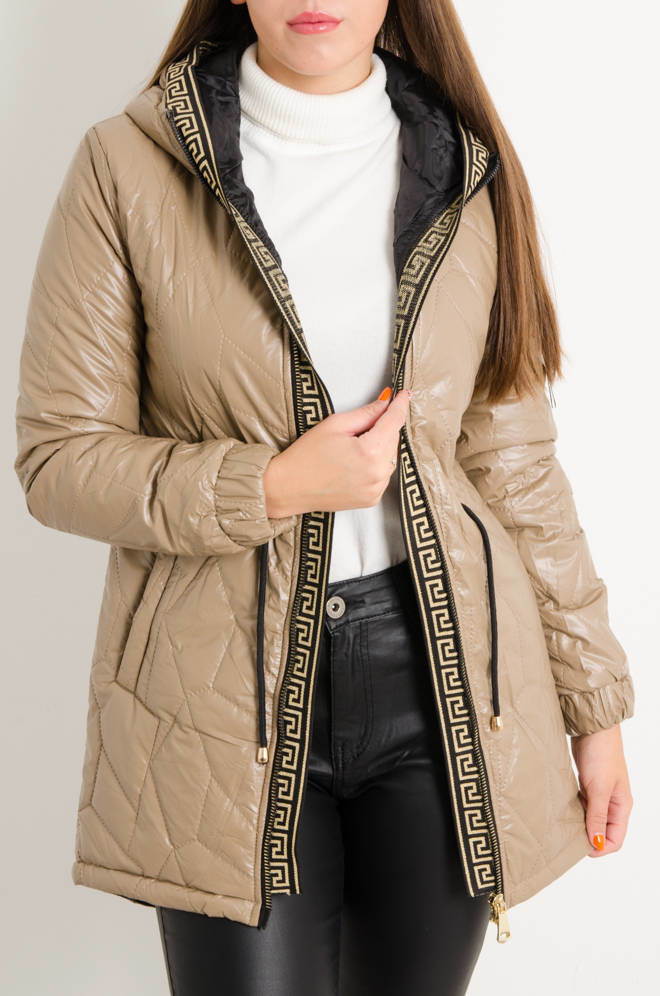 KURTKA ASYMETRYCZNA PIKOWANA WIĄZANA W PASIE- BEŻOWA