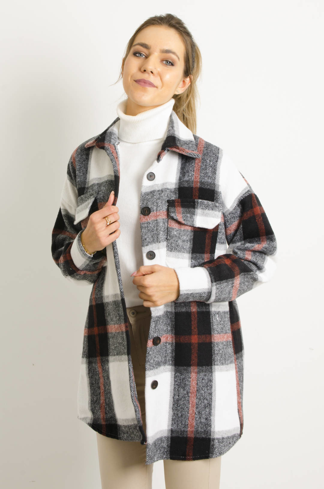 KURTKA KOSZULOWA W KRATĘ- CZARNA