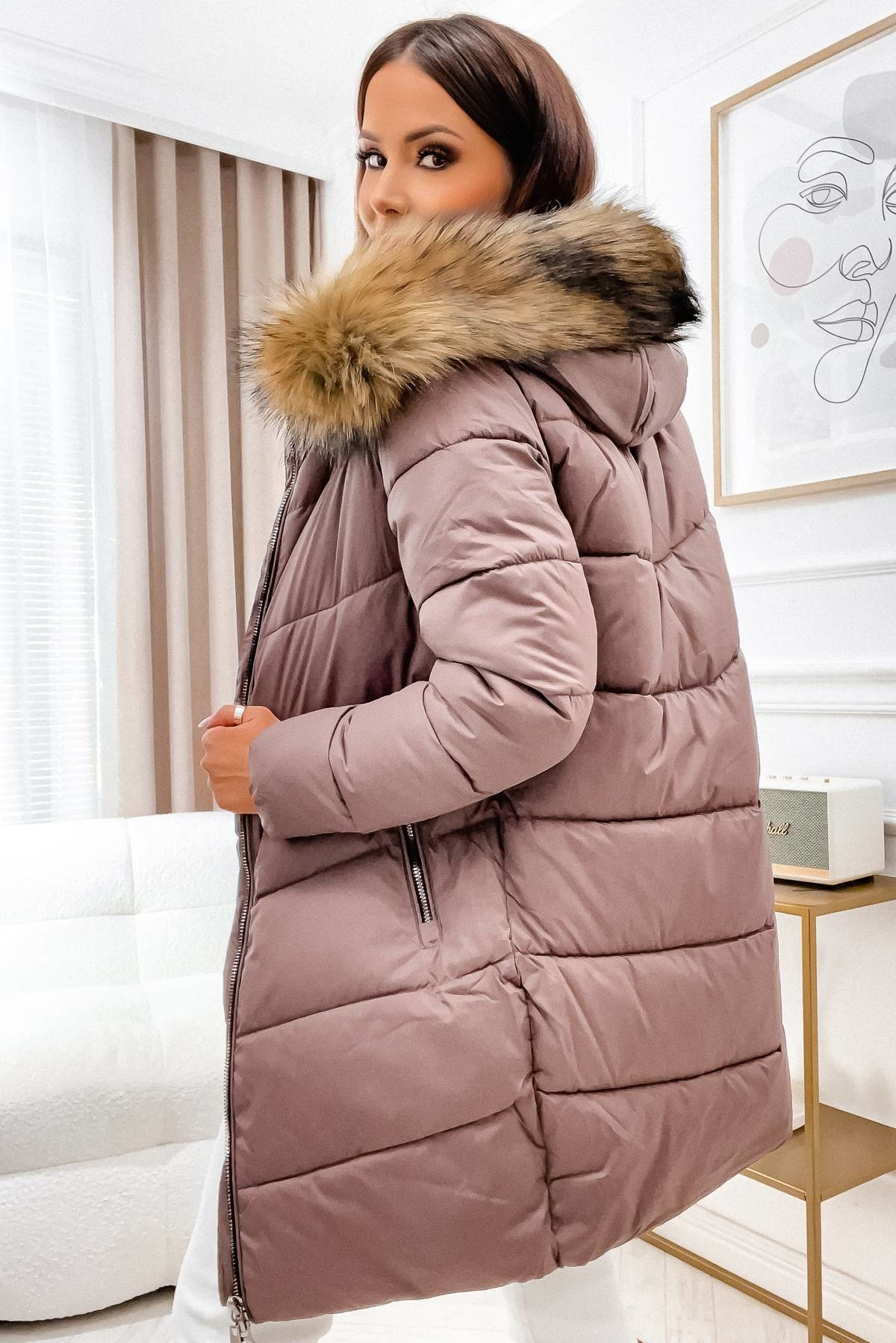 BRĄZOWA PIKOWANA KURTKA Z KAPTUREM