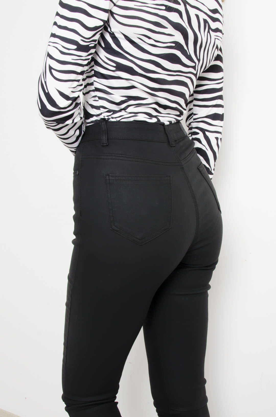 SPODNIE WOSKOWANE Z WYSOKIM STANEM- CZARNE
