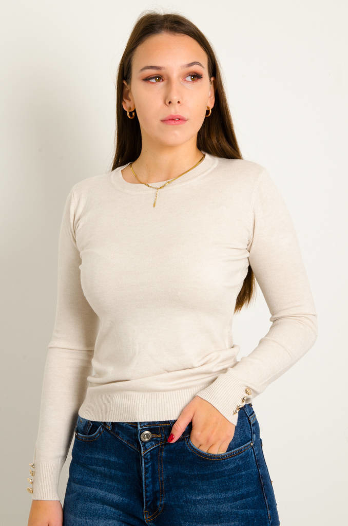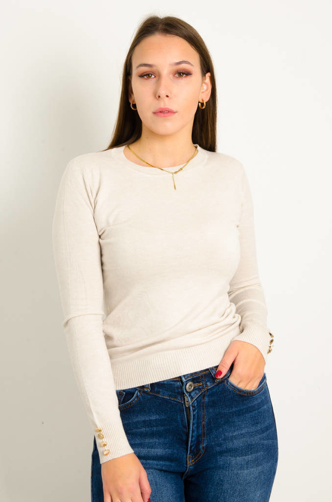 SWETER Z OZDOBNYMI GUZIKAMI- BEŻOWY