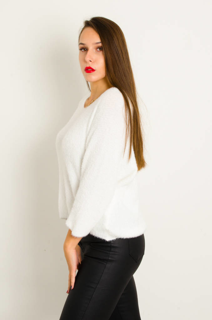 FUTRZANY SWETER NIETOPERZ- BIAŁY