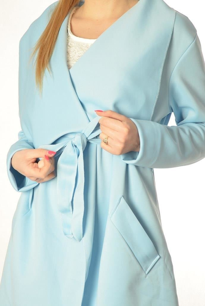 Elegancka narzutka w kolorze niebieskim, pasek w talii sprawi, że dopasujesz ją do każdej figury.