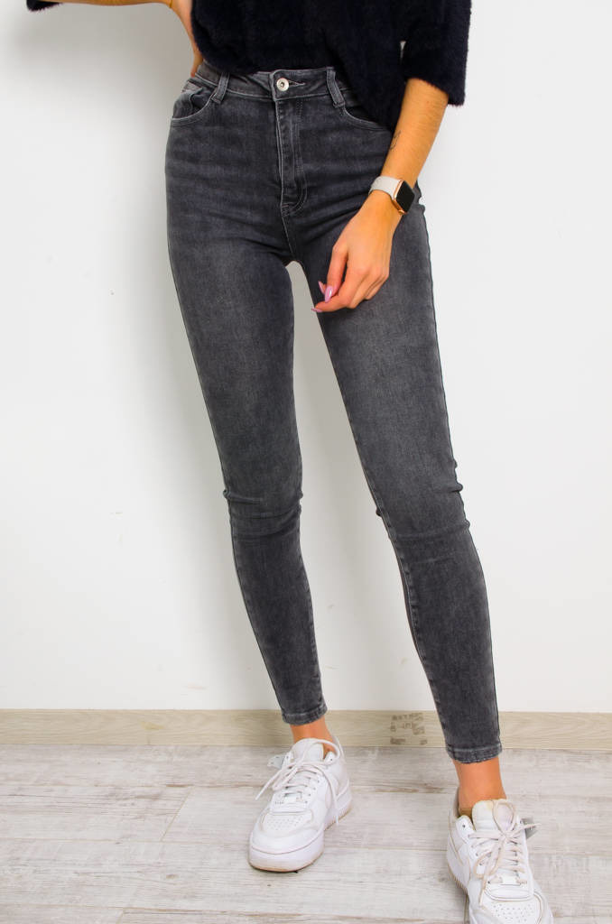 SZARE SPODNIE JEANSOWE PUSH UP Z PRZETARCIAMI- BARDZO WYSOKI STAN
