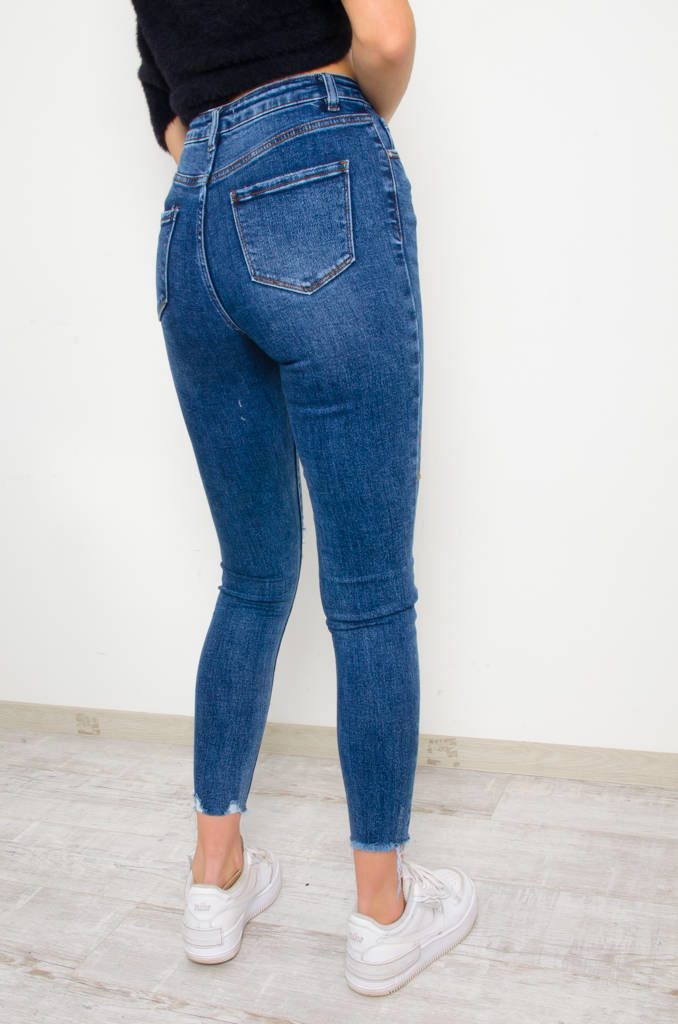 CIEMNE JEANSY Z PRZETARCIAMI- WYSOKI STAN