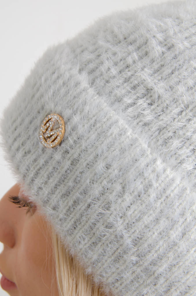 FUTRZANA CZAPKA Z POMPONEM- SZARA
