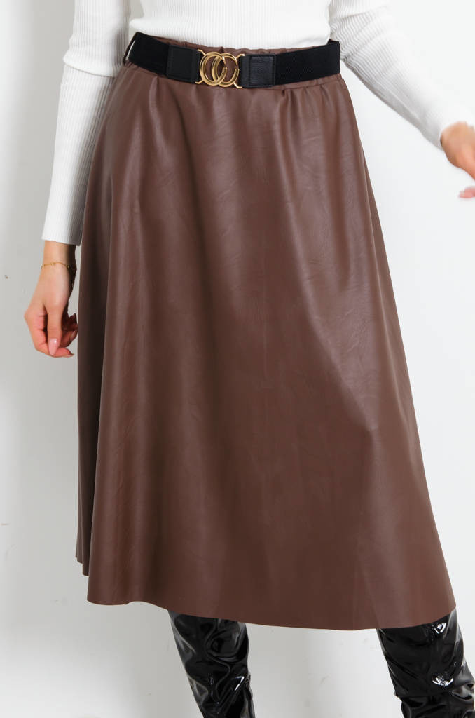 BRĄZOWA ROZKLOSZOWANA SPÓDNICA Z IMITACJI SKÓRY+ PASEK