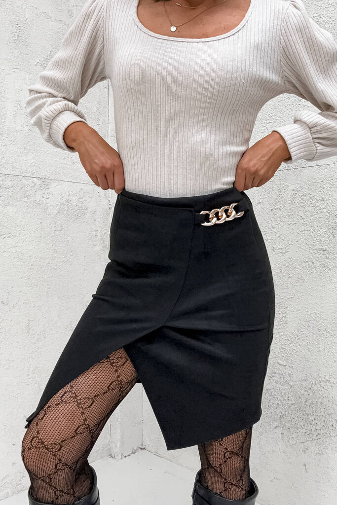 WELUROWA SPÓDNICA Z OZDOBNYM ŁAŃCUCHEM- CZARNA