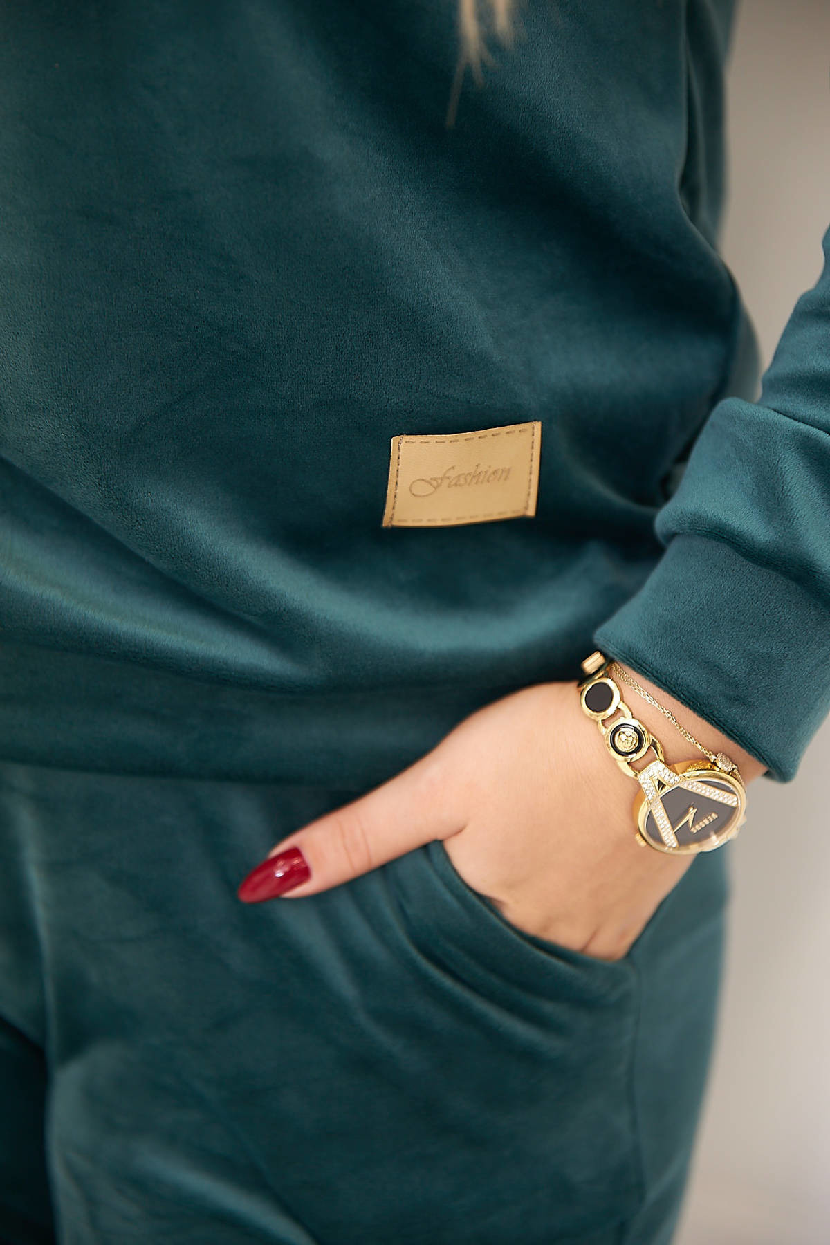 WELUROWY KOMPLET DRESOWY PLUS SIZE- BUTELKOWA ZIELEŃ