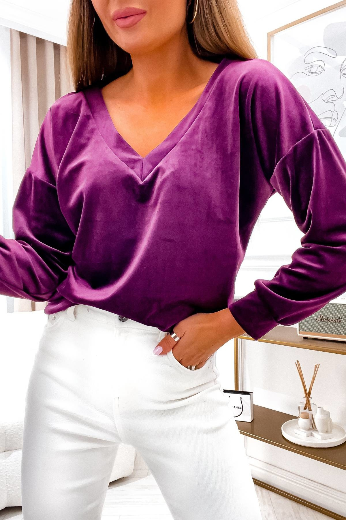 WELUROWA BLUZA Z DEKOLTEM W SEREK- BORDOWA