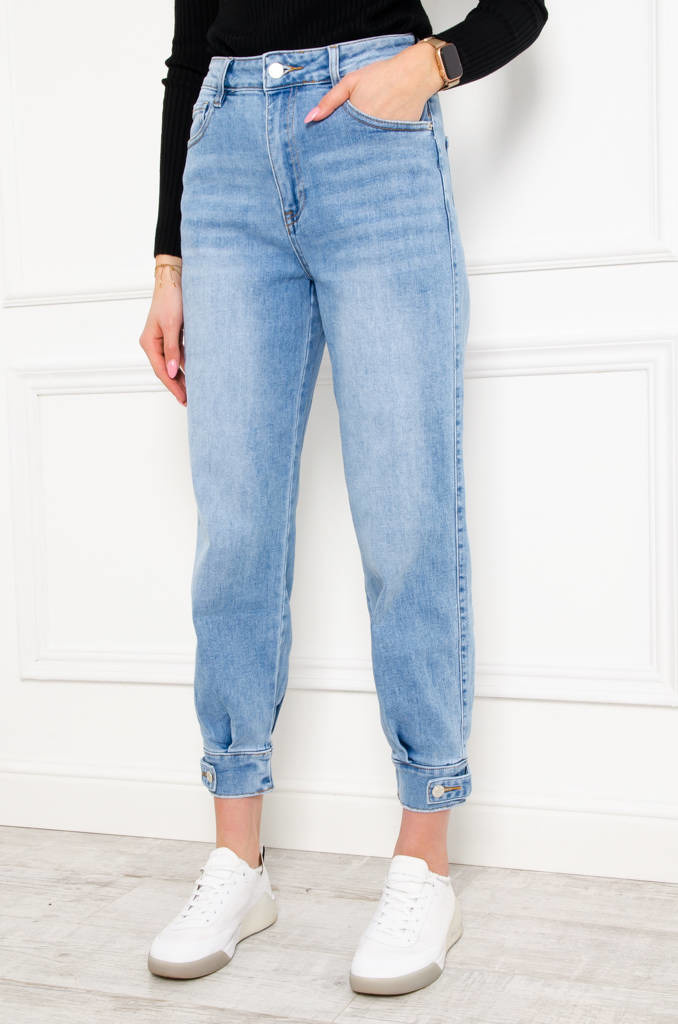 SPODNIE JEANSOWE Z WYSOKIM STANEM - ZAPIĘCIE NA DOLE NOGAWKI