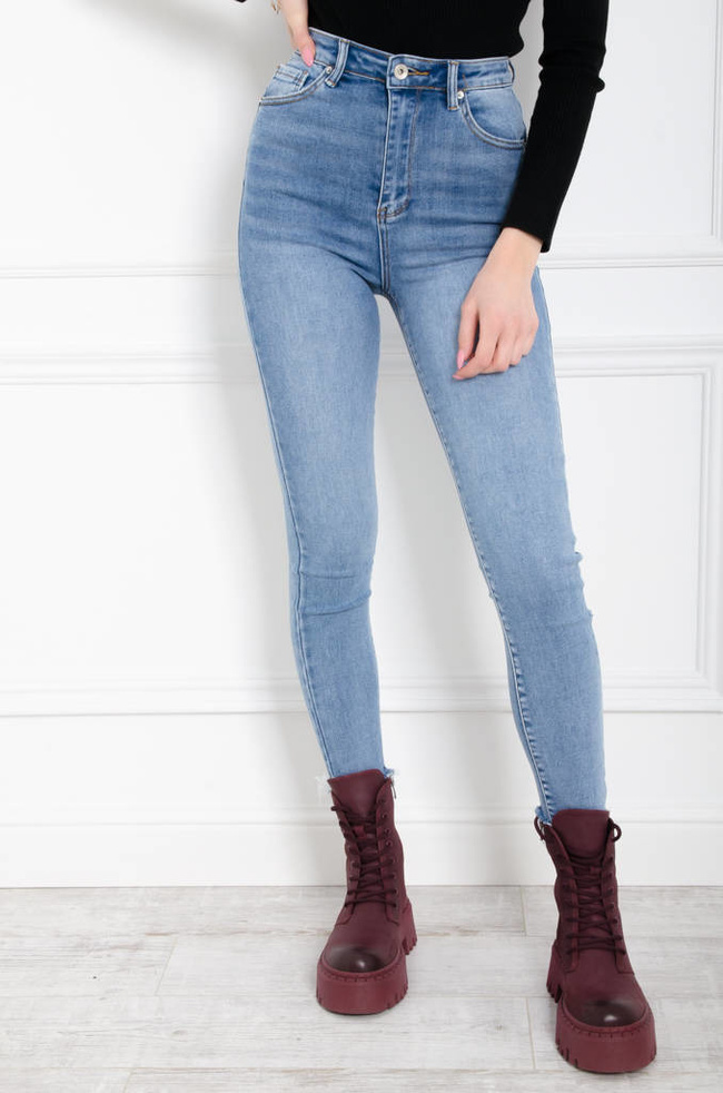 SPODNIE JEANSOWE Z SZARPANĄ NOGAWKĄ PUSH UP- WYSOKI STAN