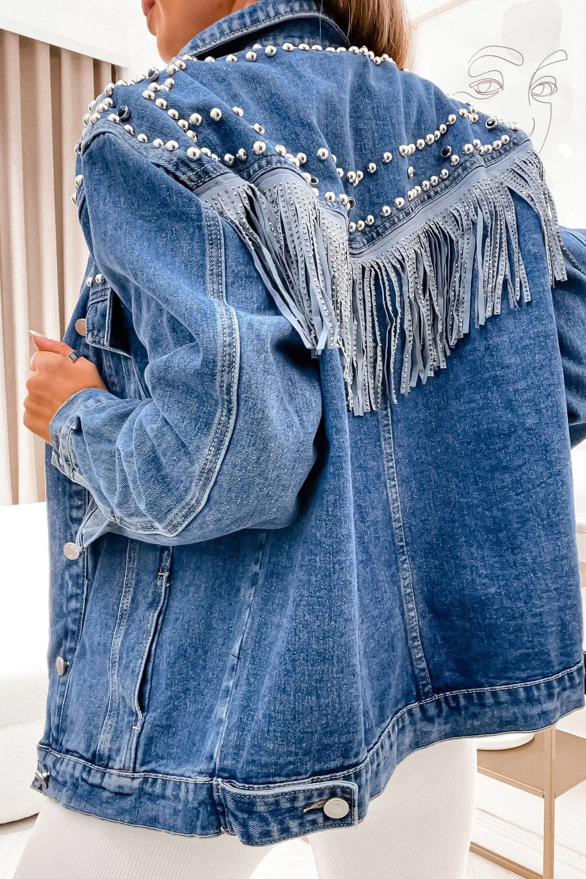 KURTKA JEANSOWA Z OZDOBNYMI DŻETAMI I FRĘDZLAMI