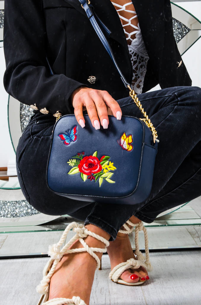 TOREBKA KUFEREK Z HAFTOWANYM WZOREM- GRANATOWA