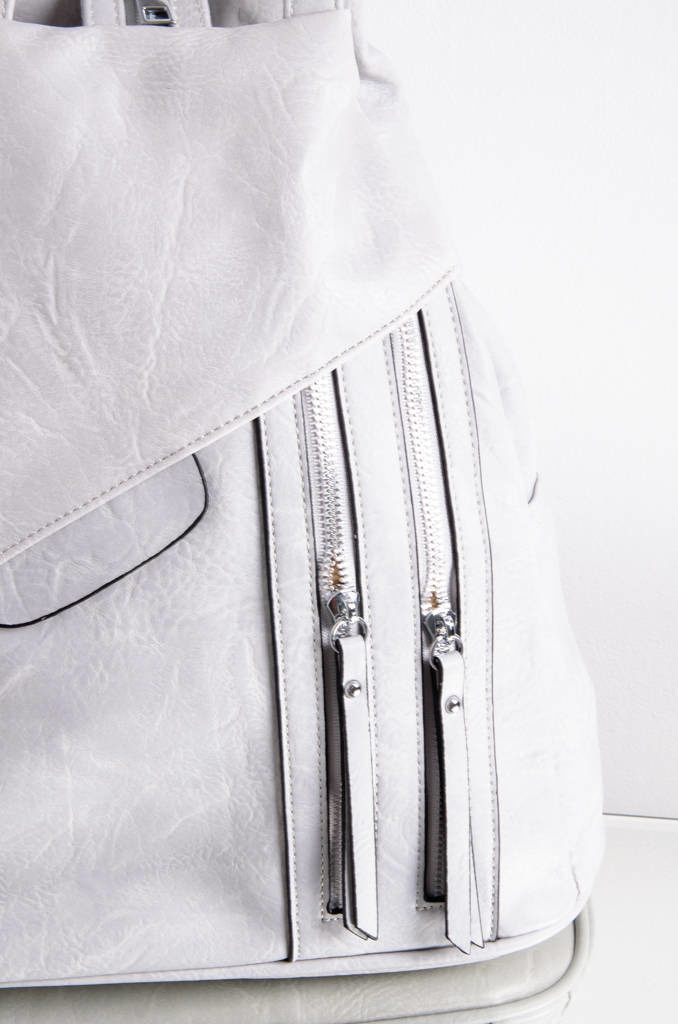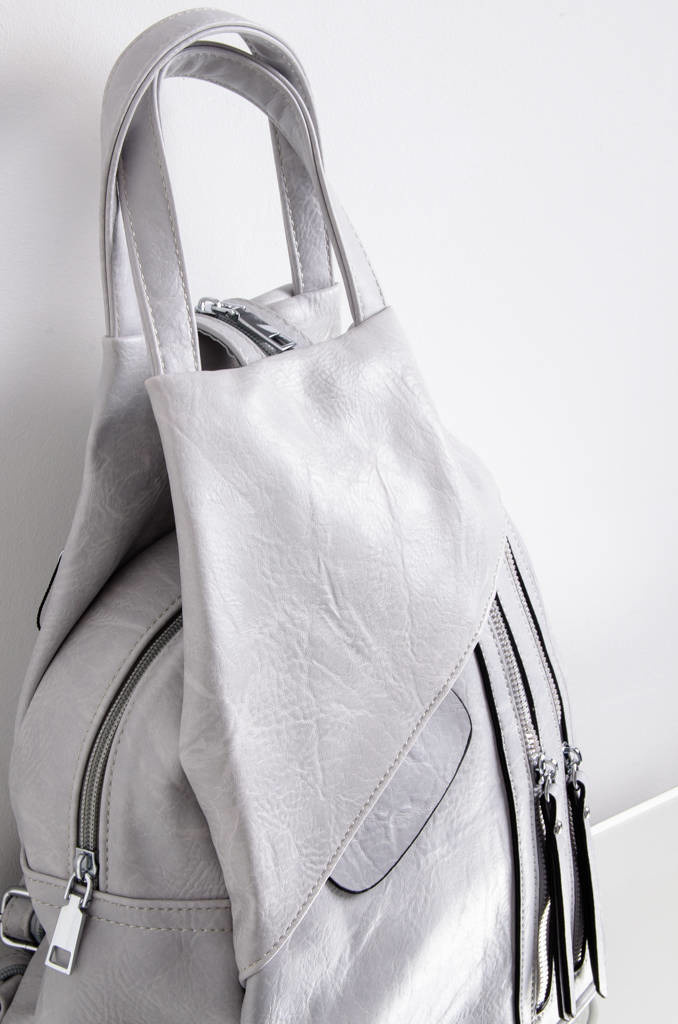 PLECAK Z IMITACJI SKÓRY Z OZDOBNYMI ZAMKAMI- SZARY