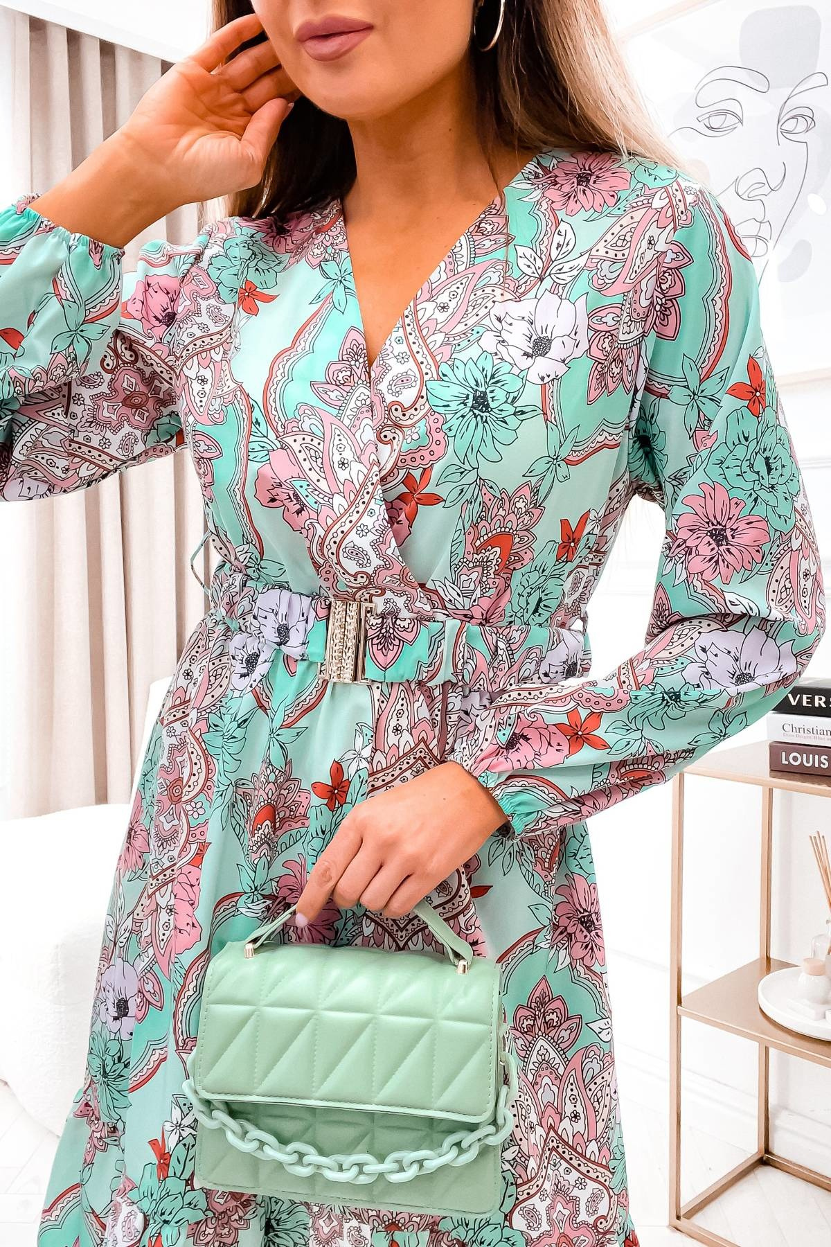 WZORZYSTA SUKIENKA Z PASKIEM- ZIELONA