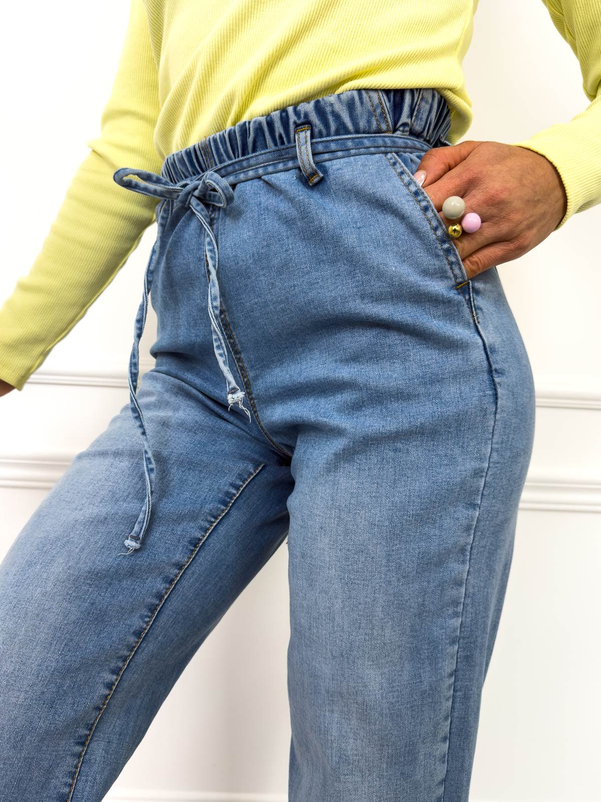 SPODNIE JEANSOWE Z SZEROKIMI NOGAWKAMI I WIĄZANIEM W PASIE