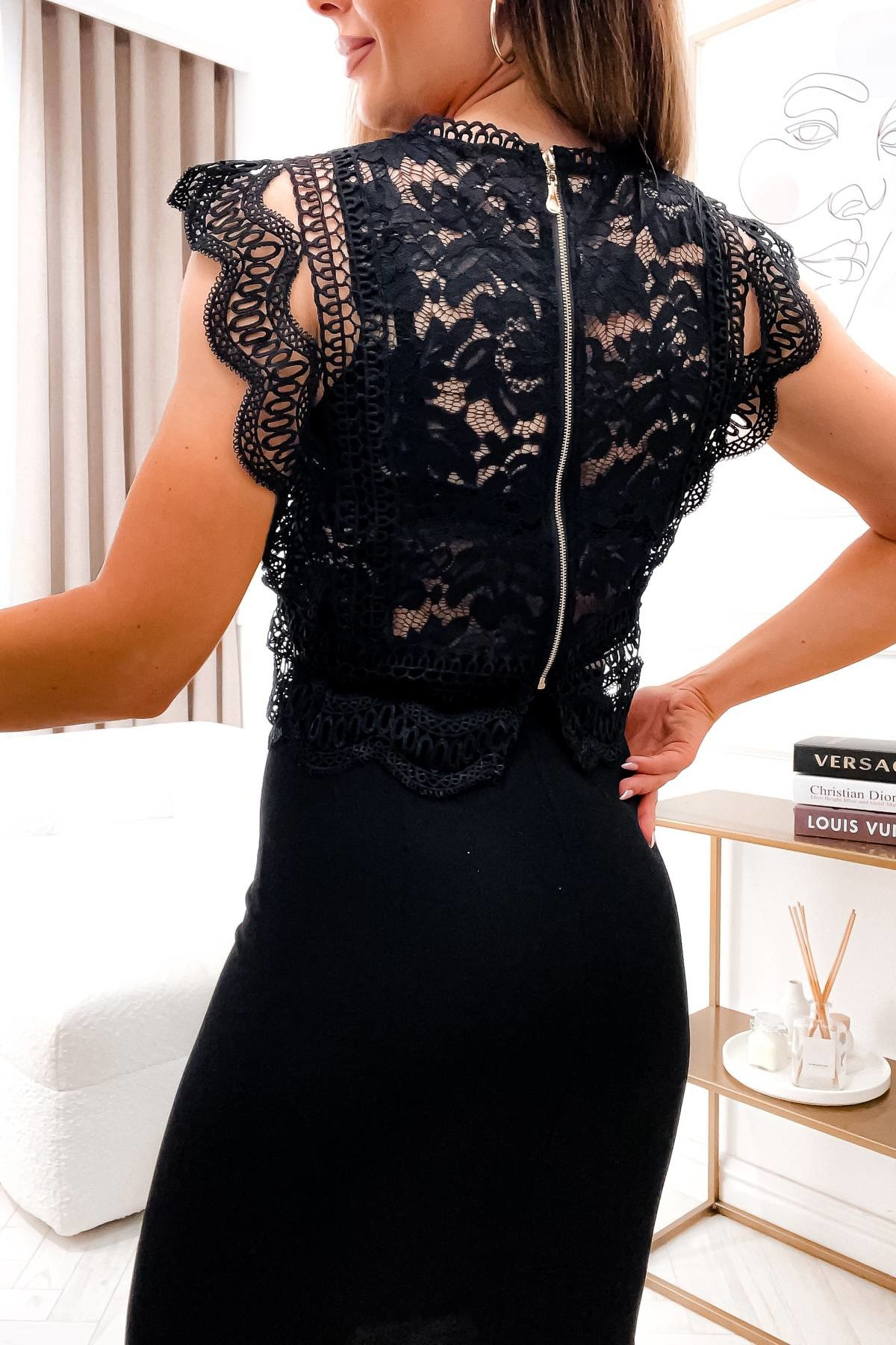 AŻUROWA BLUZKA Z OZDOBNYM ZAMKIEM- CZARNA