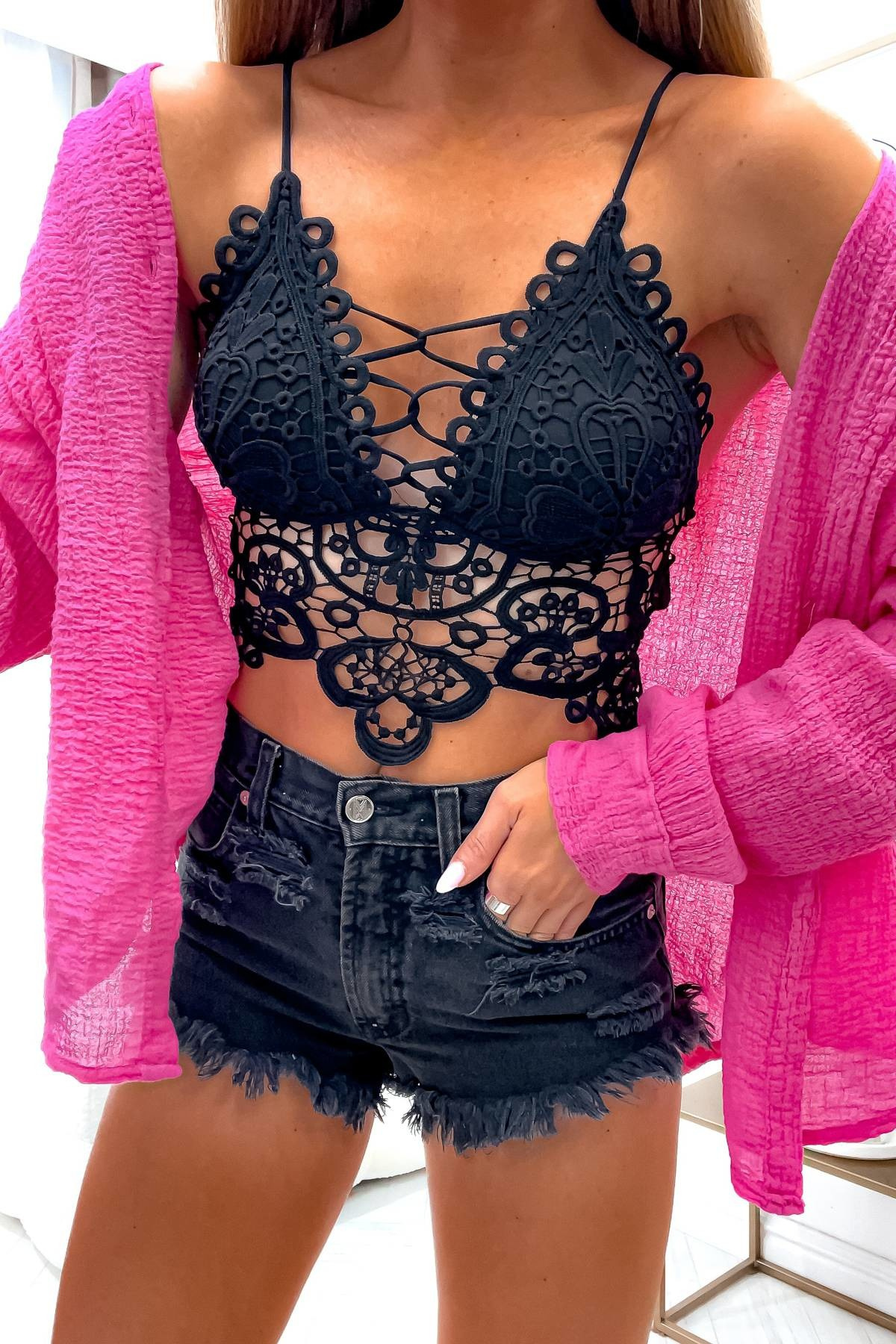 KORONKOWY BIELIŹNIANY TOP- CZARNY