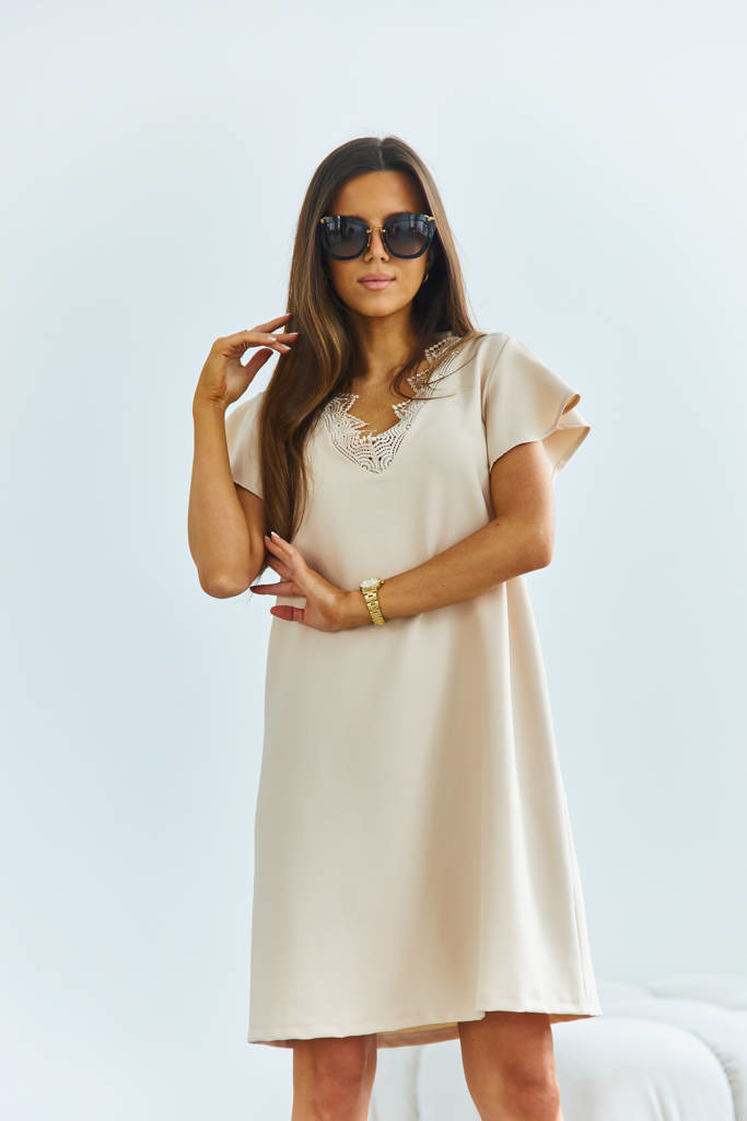 SUKIENKA Z KORONKOWYM DEKOLTEM- BEŻOWA