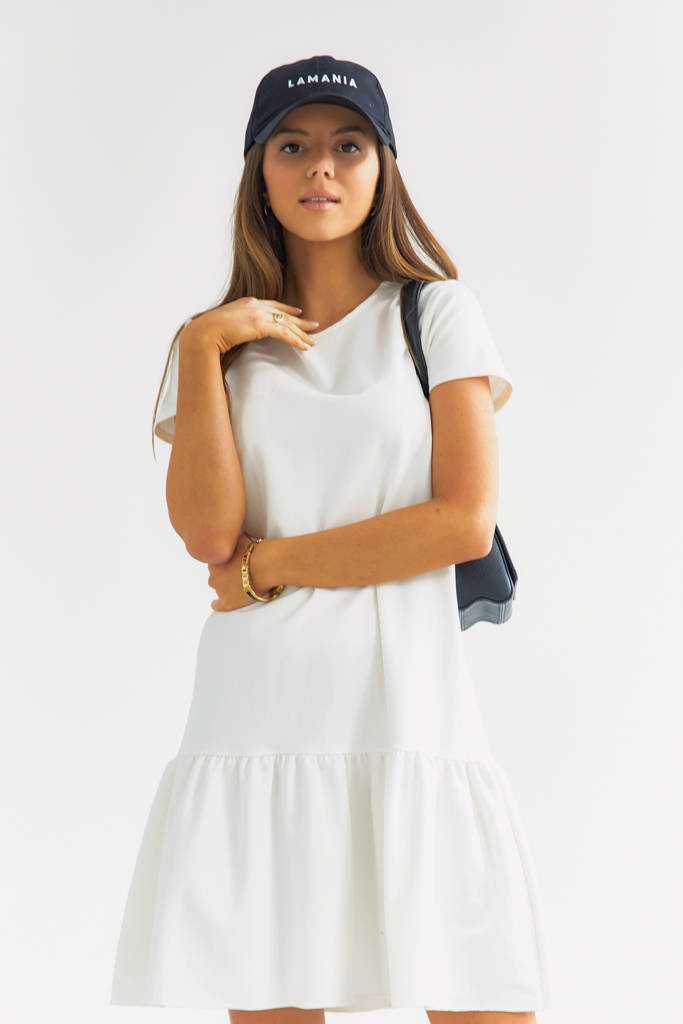 BAWEŁNIANA SUKIENKA Z FALBANĄ- BIAŁA
