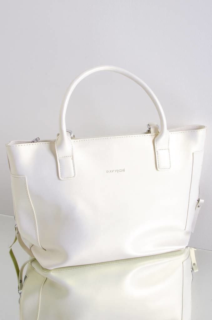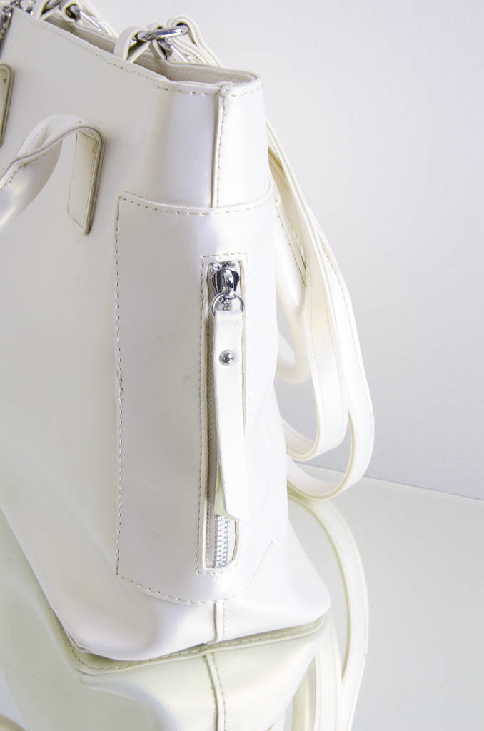 TOREBKA TYPU SHOPPER Z ZAMKAMI PO BOKACH- PERŁOWA