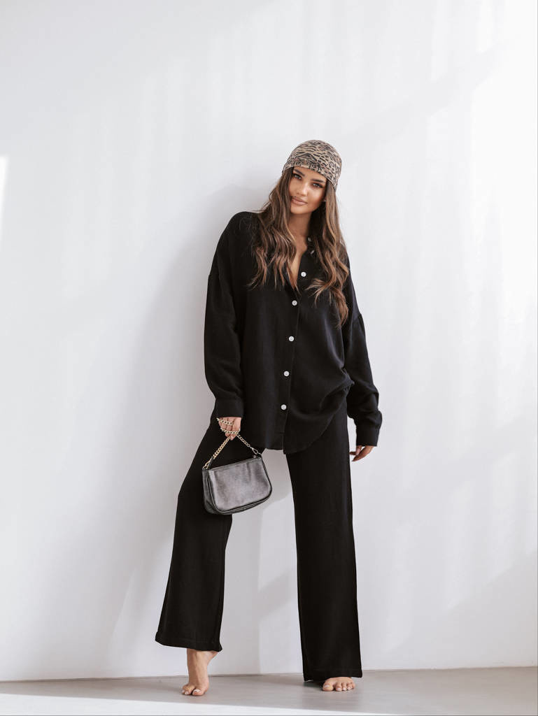 LNIANY KOMPLET KOSZULA+ SPODNIE- CZARNY