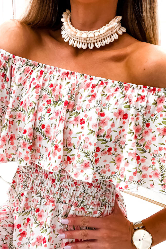 SUKIENKA MIDI W KWIATY HISZPANKA- BIAŁA