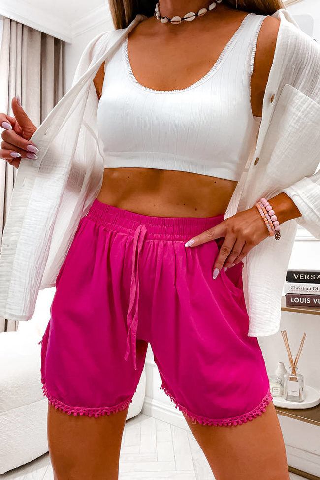 SZORTY Z GUMĄ W PASIE I OZDOBNĄ KORONKĄ- RÓŻOWE