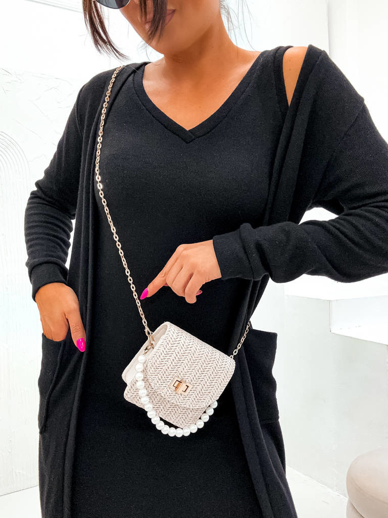 SUKIENKA SWETERKOWA BEZ RĘKAWÓW Z KARDIGAMEN- CZARNA