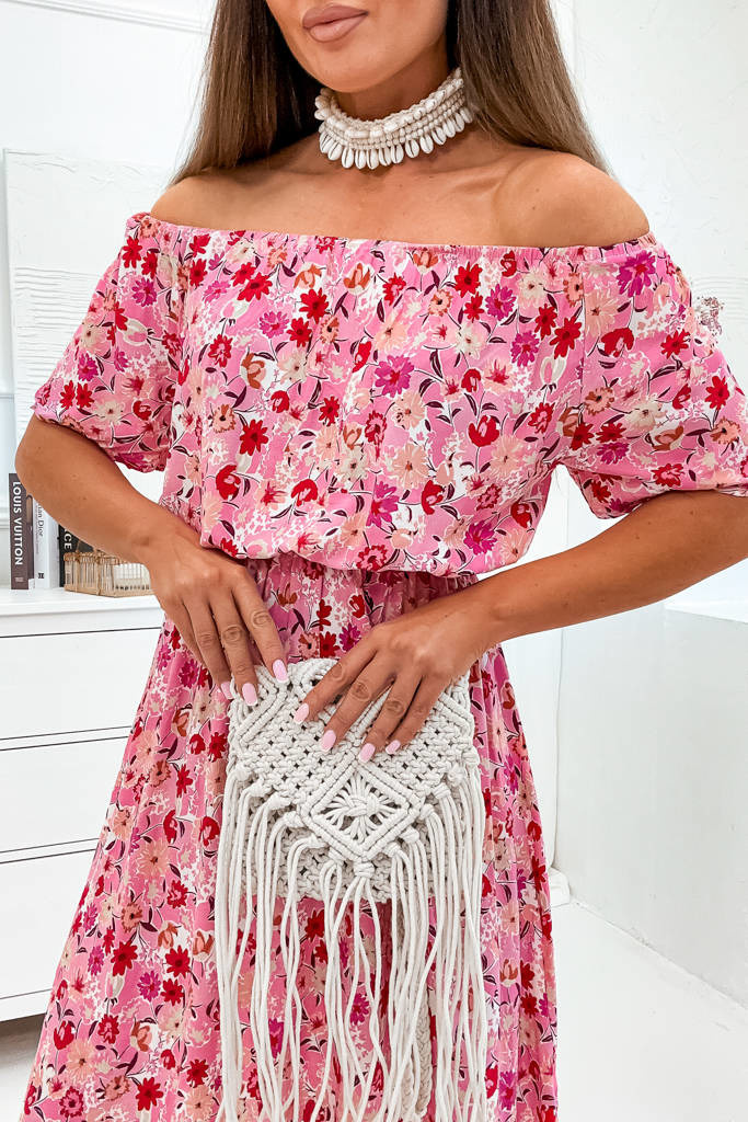 SUKIENKA W KWIATY HISZPANKA Z GUMKĄ W PASIE- RÓŻOWA