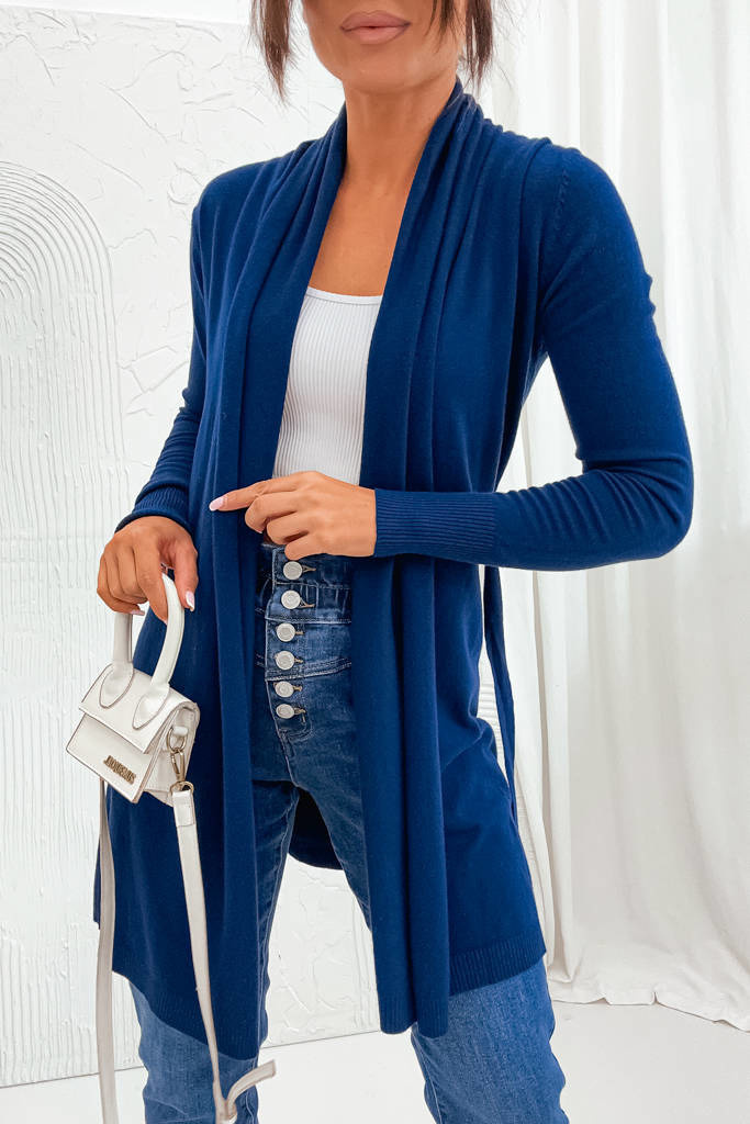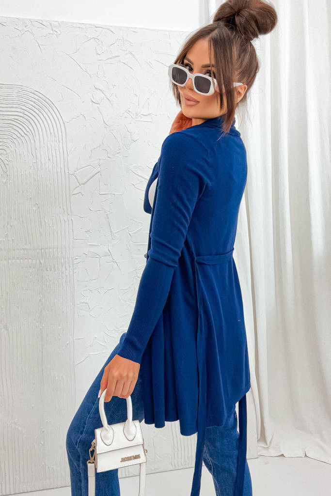 DZIANINOWA NARZUTA Z WIĄZANIEM W PASIE- GRANATOWA