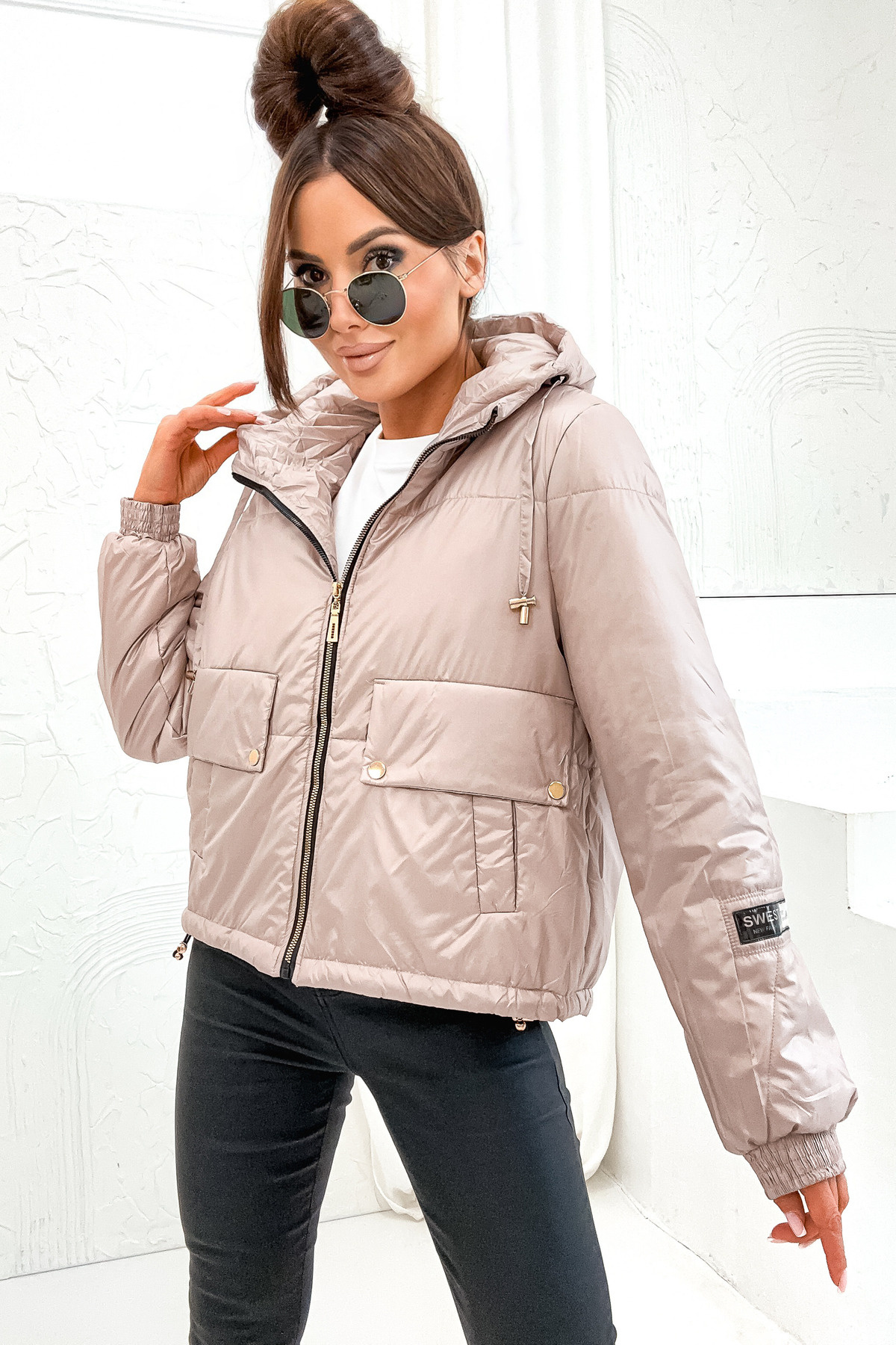 KURTKA ASYMETRYCZNA ZE ZŁOTYMI ELEMENTAMI- BEŻOWA