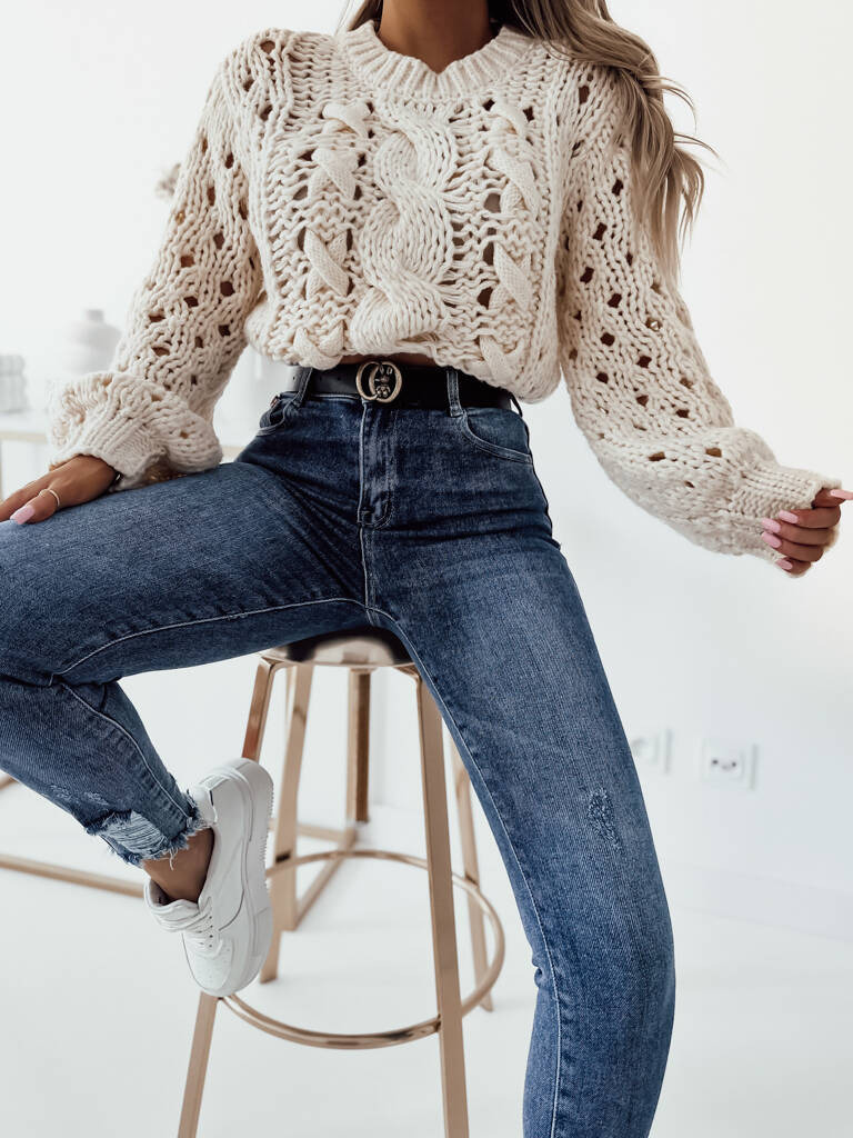 SPODNIE JEANSOWE Z PRZETARCIAMI NA DOLE NOGAWKI+ PASEK