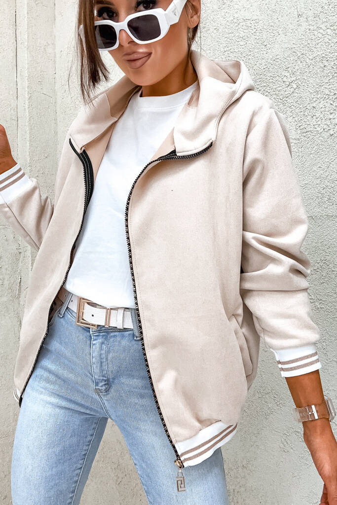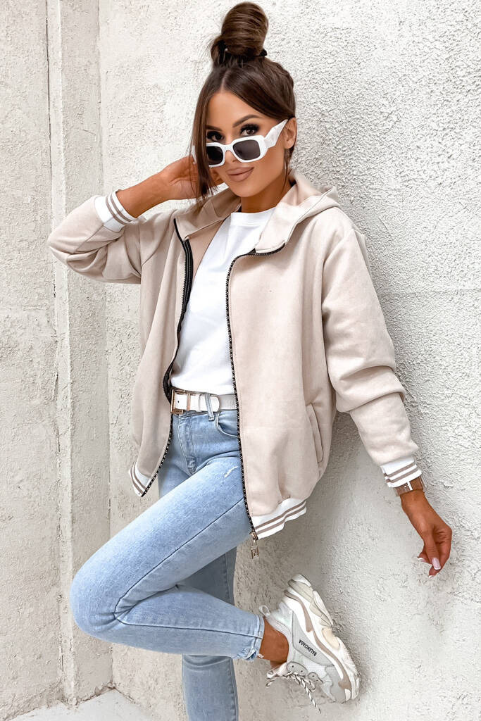 BLUZA ZAMSZOWA Z KONTRASTOWYMI ŚCIĄGACZAMI- BEŻOWA