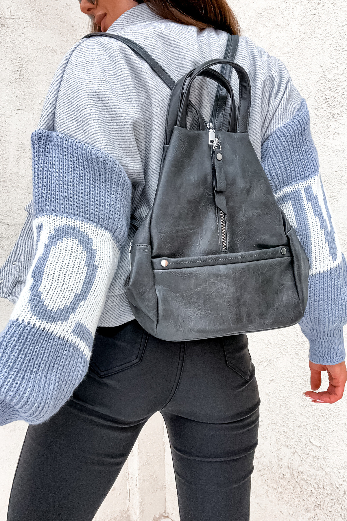 PLECAK Z OZDOBNYM ZAMKIEM I KIESZONKĄ Z PRODU- SZARY