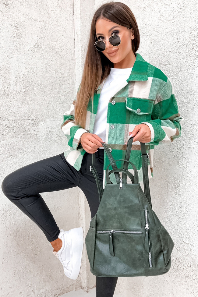 PLECAK Z IMITACJI SKÓRY Z OZDOBNYMI ZAMKAMI- ZIELONY