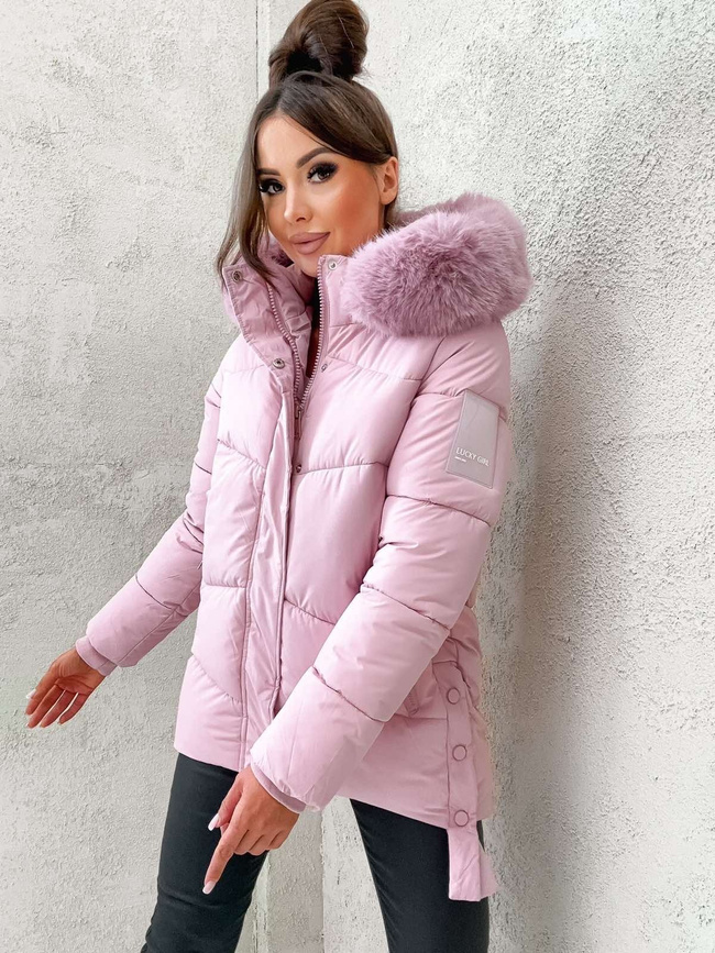 KURTKA Z NASZYWKĄ I LISEM NA KAPTURZE- RÓŻOWA