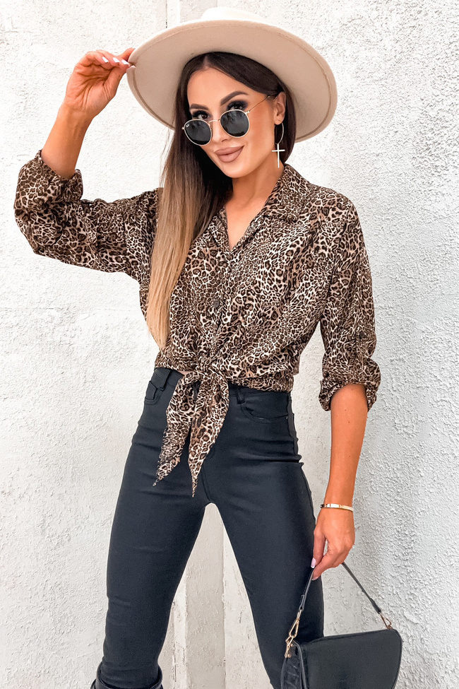 BLUZKA ZAPINANA NA GUZIKI Z WIĄZANIEM- GEPARD