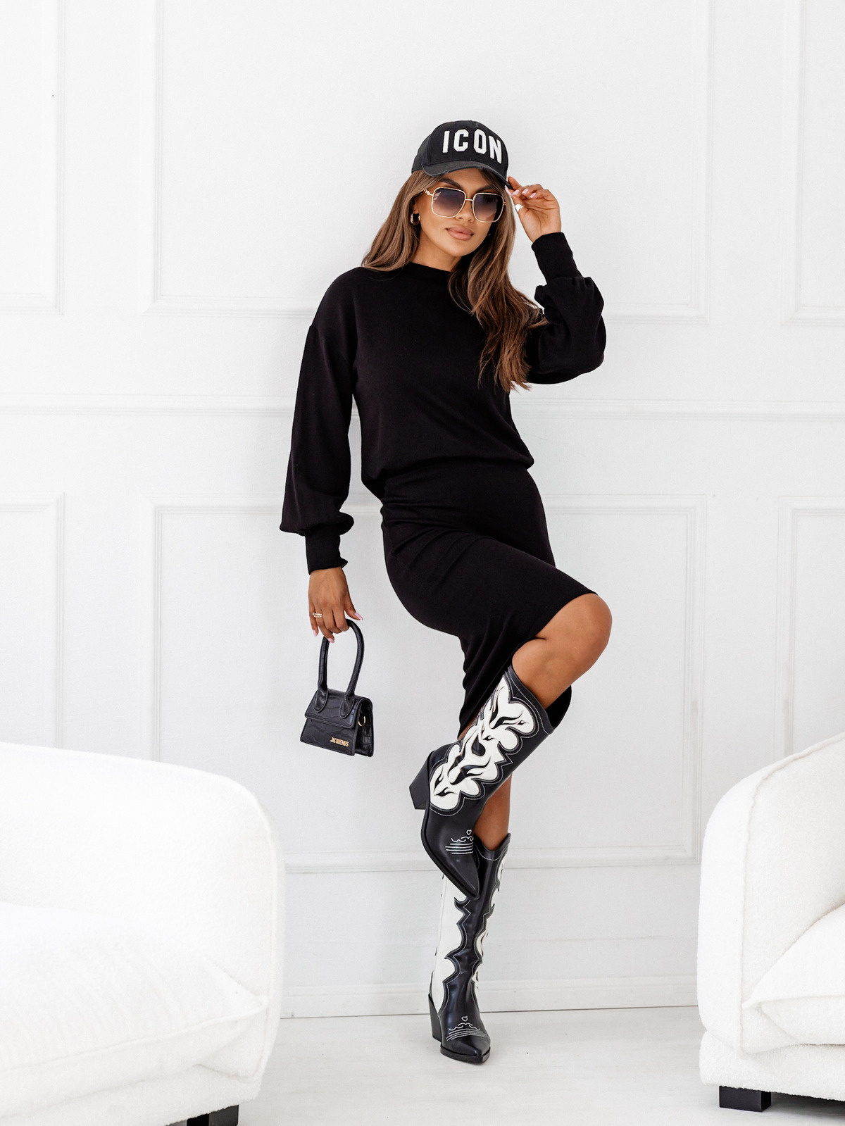 DZIANINOWY KOMPLET BLUZKA+ SPÓDNICZKA- CZARNY