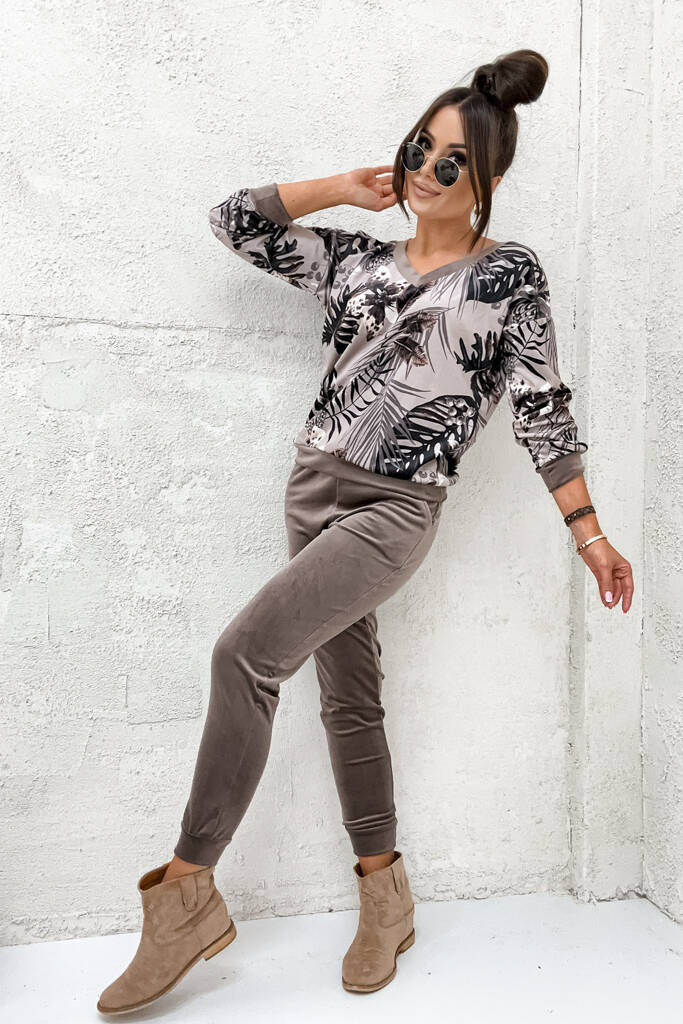 WERULOWY KOMPLET DRESOWY Z MOTYWEM LIŚCI- BRĄZOWY