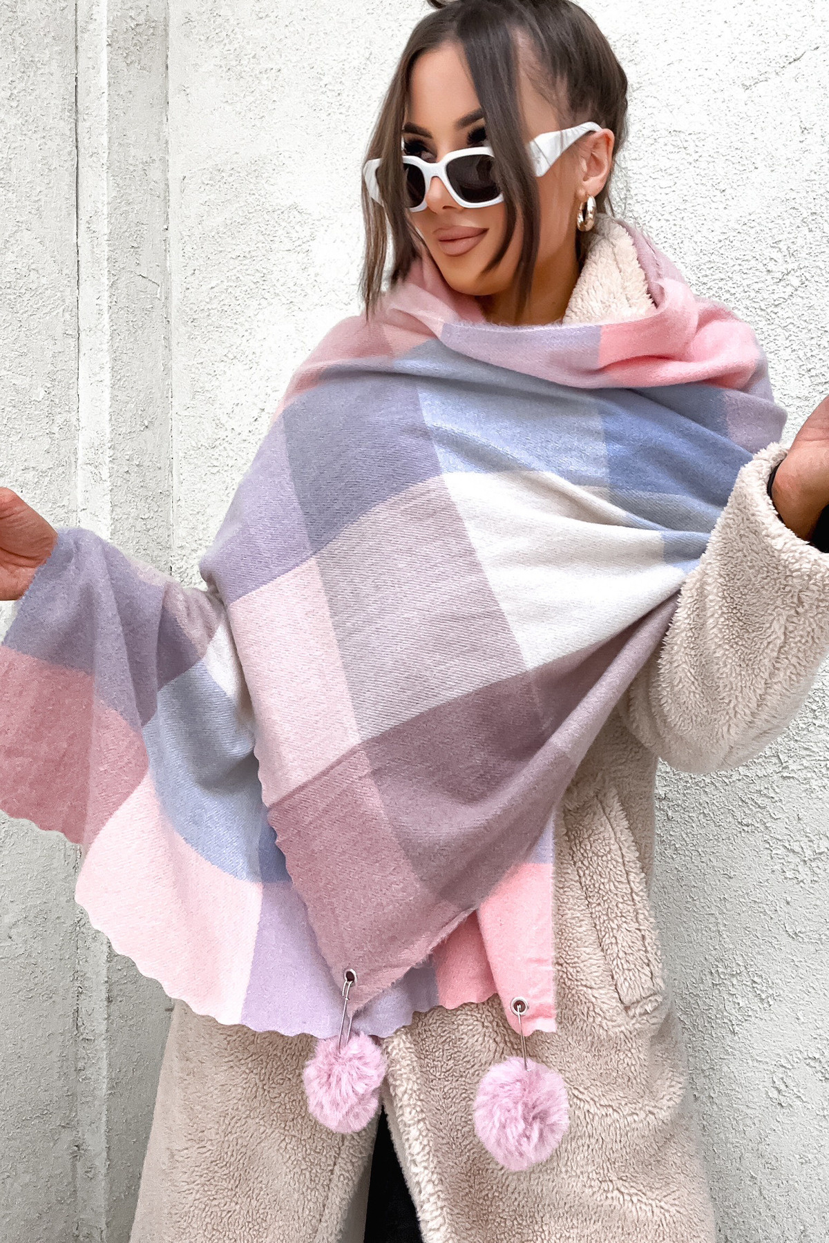 SZAL W KARTE Z OZDOBNYM POMPONEM- J.RÓŻ