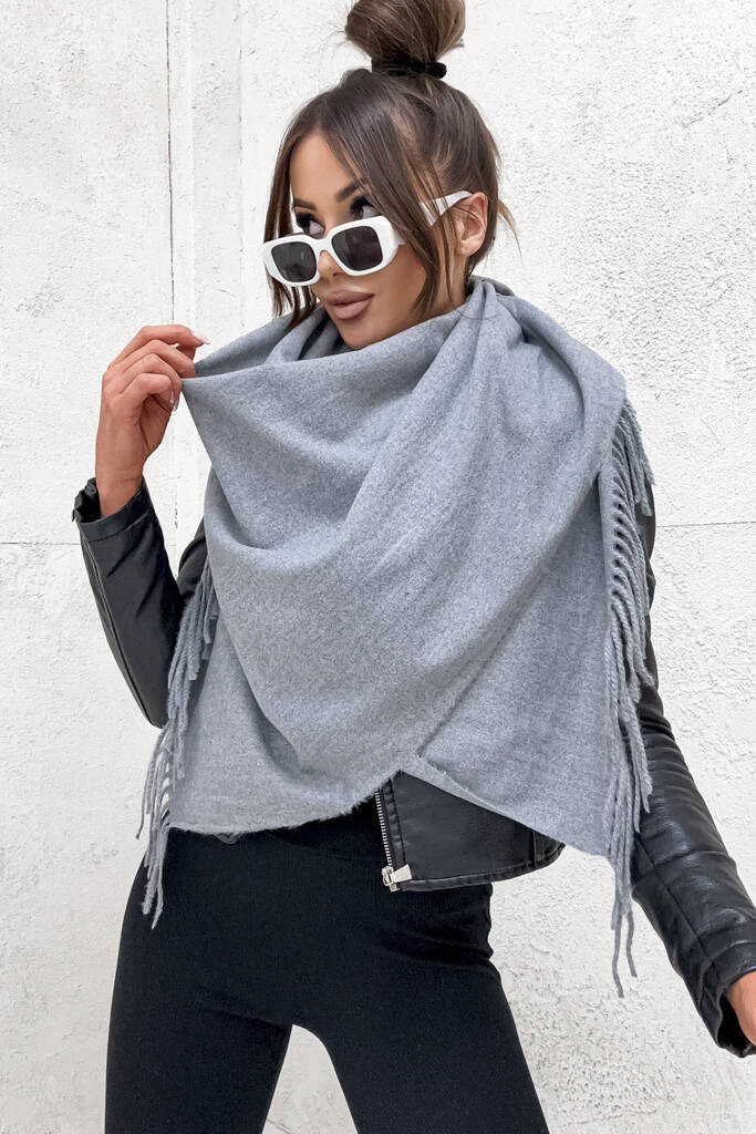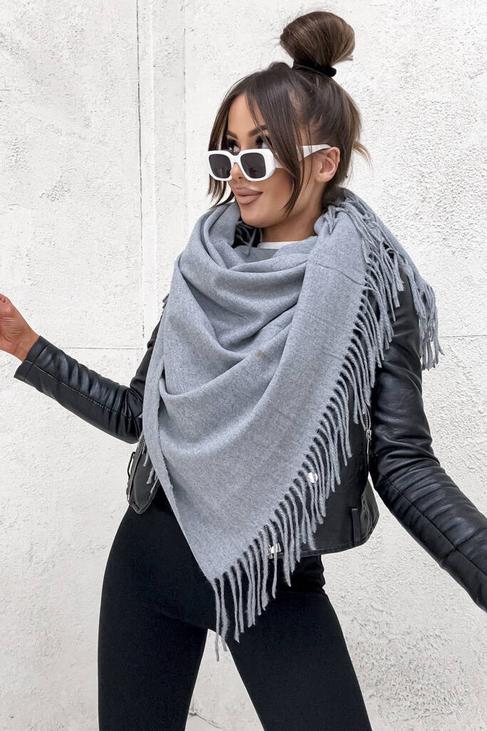 CHUSTA Z FRĘDZLAMI KLASYK- SZARA
