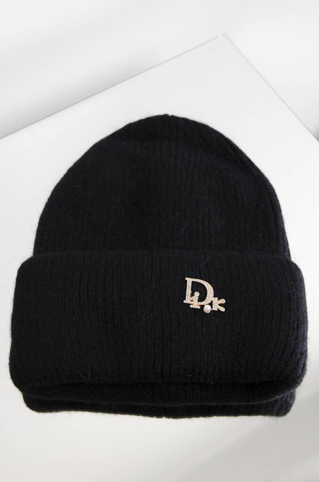 OCIEPLANA CZAPKA ZIMOWA Z OZDOBNĄ PRZYPINKĄ- CZARNA