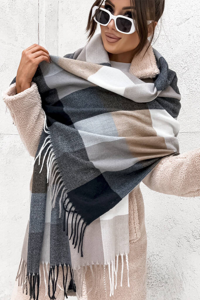 SZAL W KRATĘ Z FRĘDZLAMI- CZARNY