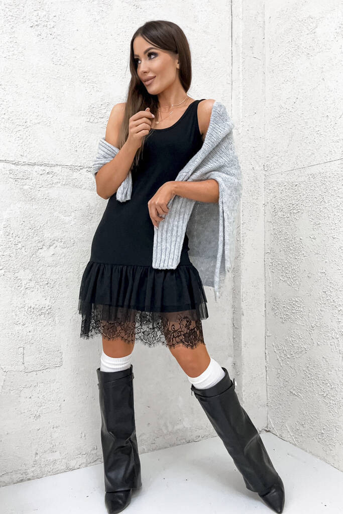 CZARNA SUKIENKA HALKA Z KORONKĄ